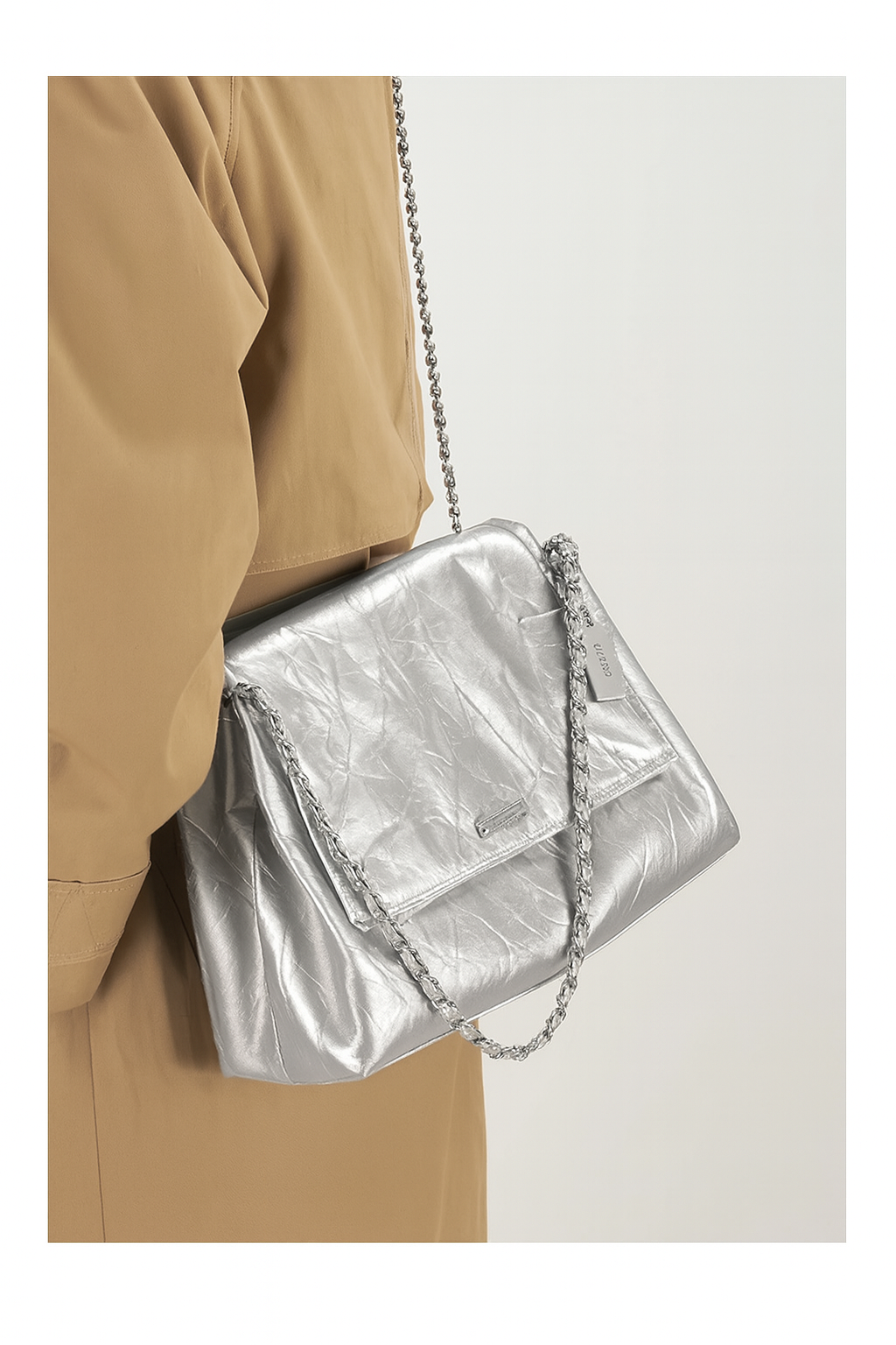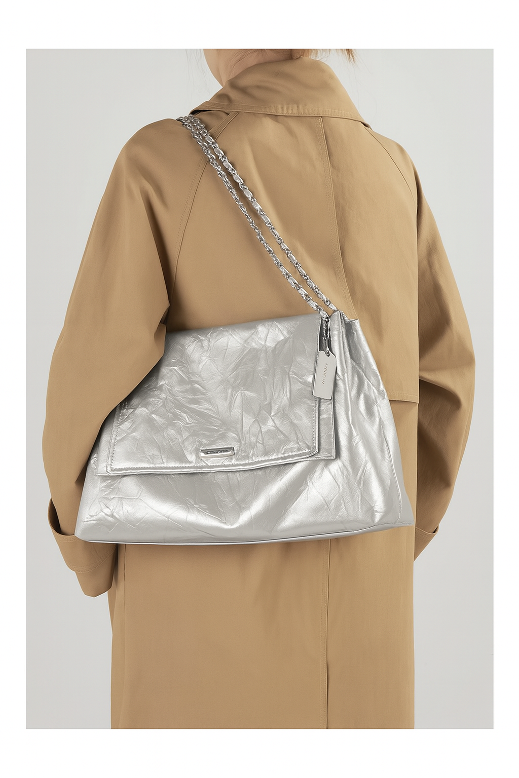 小众链条单肩斜挎托特包女牛皮大容量腋下通勤邮差包 (DF2321-银色) *仅限使用消费积分50%* / Pcs