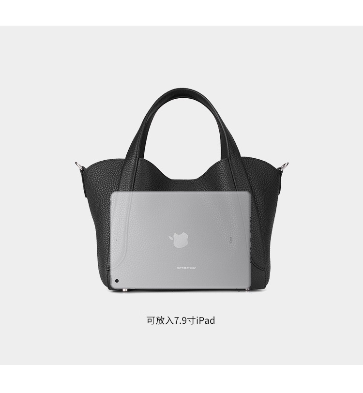 新款头层牛皮菜篮子包中号时尚通勤手提斜挎包大容量水桶包 (DF25002) *仅限使用消费积分50%*