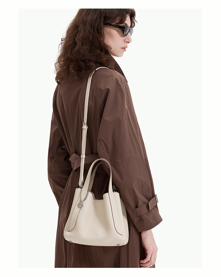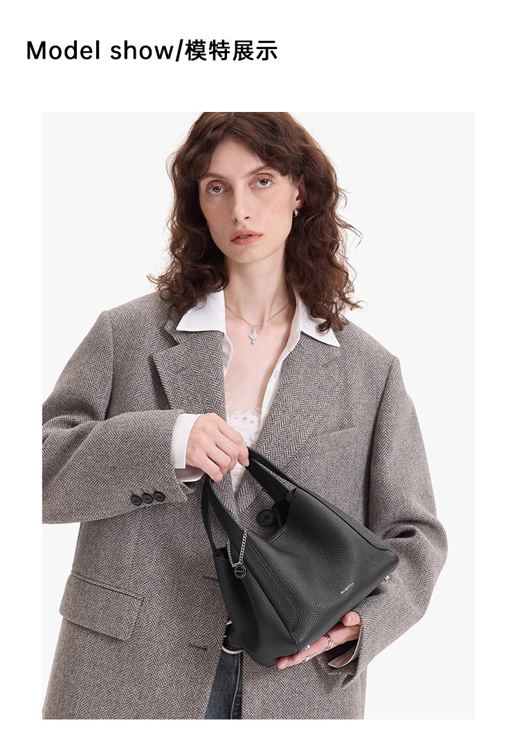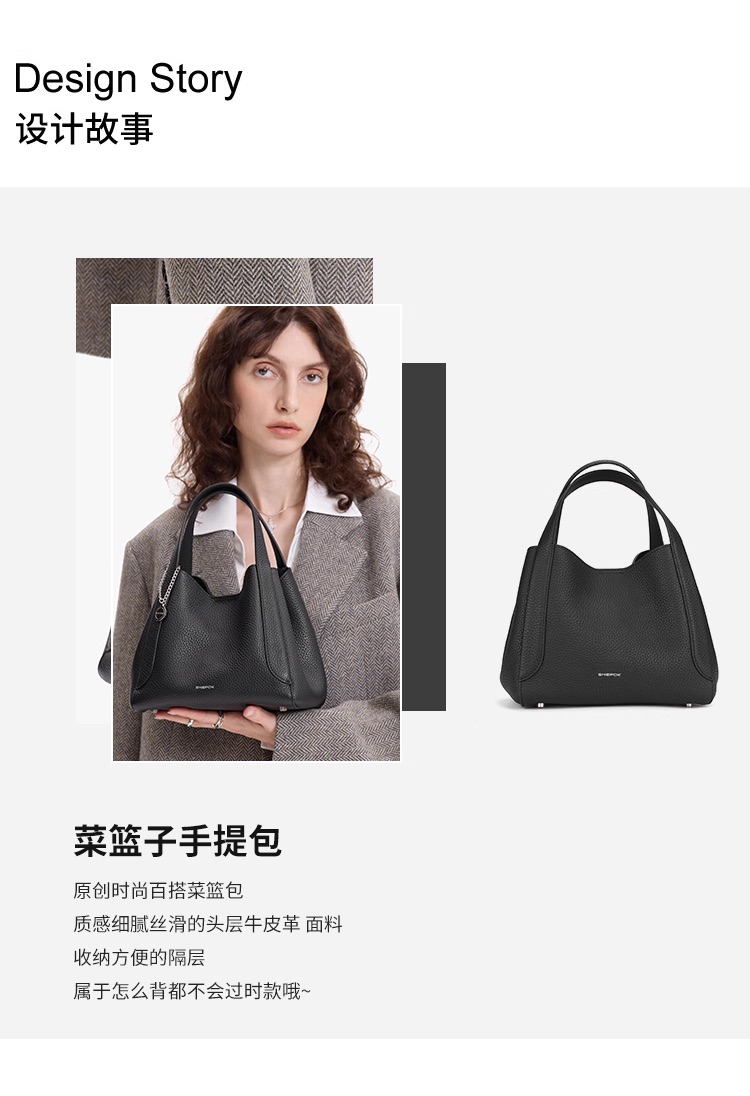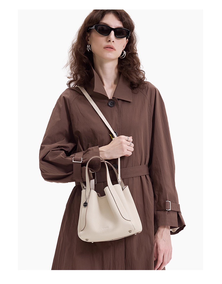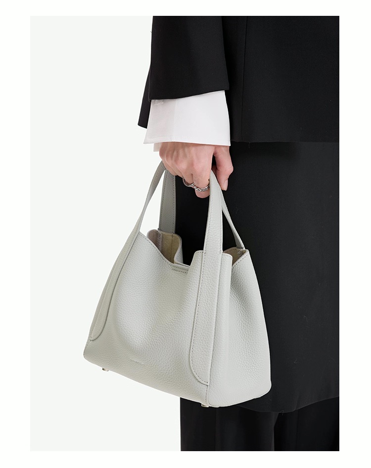 新款头层牛皮菜篮子包中号时尚通勤手提斜挎包大容量水桶包 (DF25002) *仅限使用消费积分50%* / Pcs