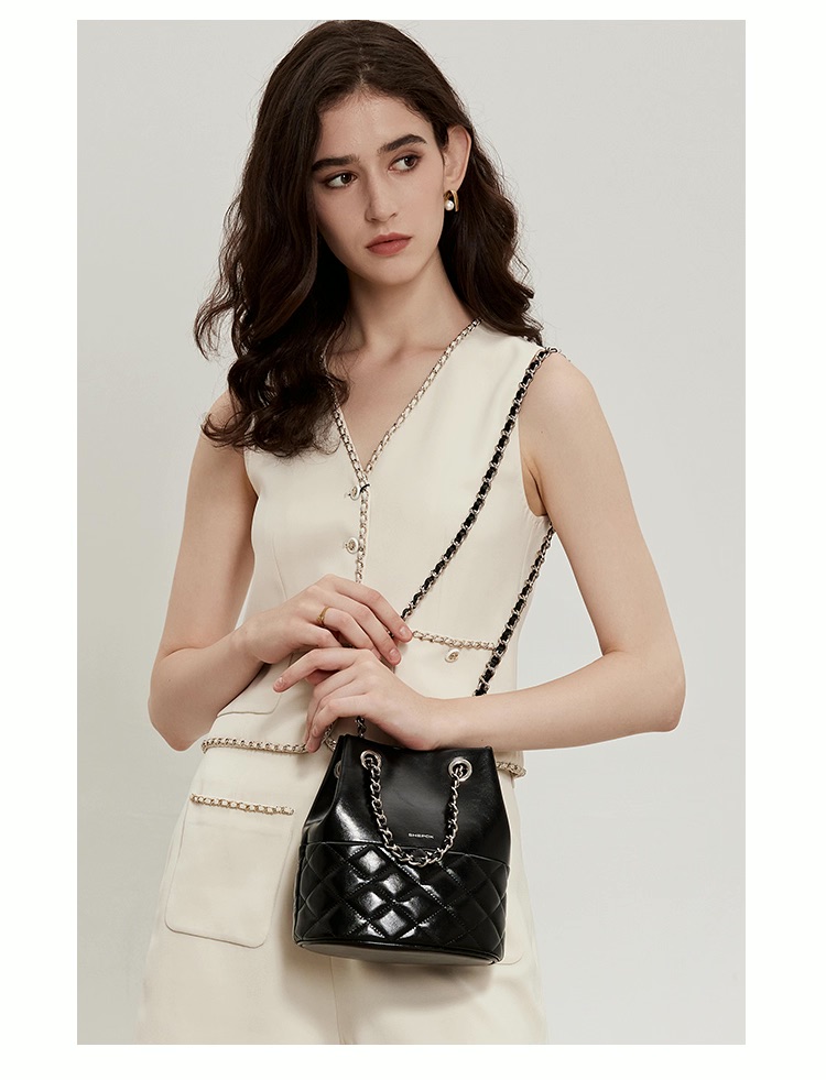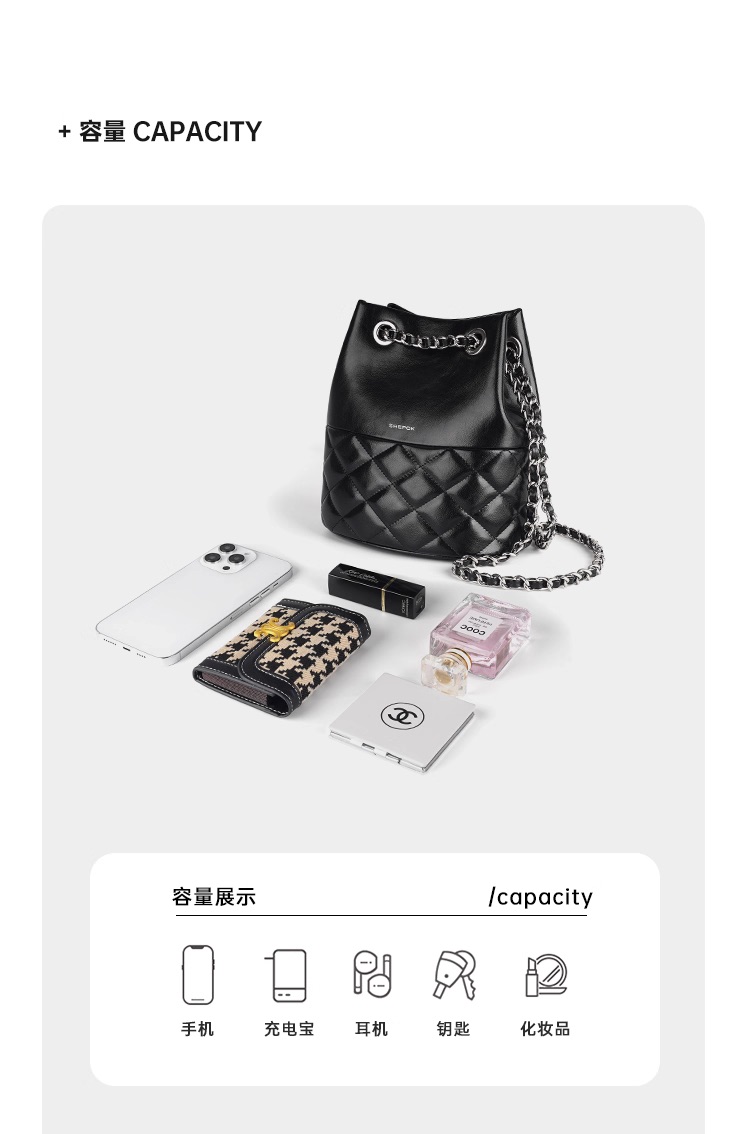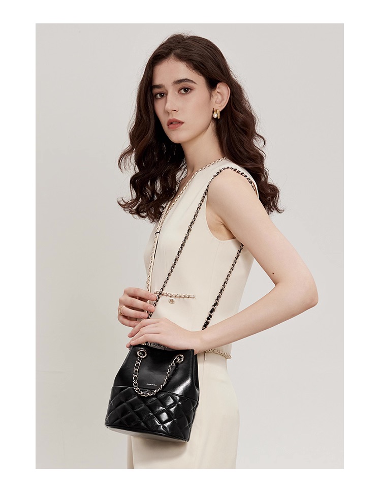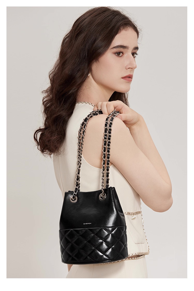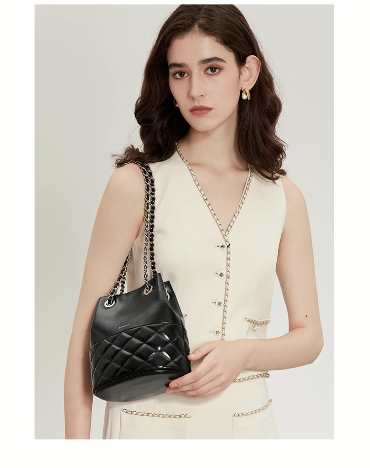 真皮小香风菱格链条水桶包2025新款高级感小众单肩斜挎包女 (Z9120-黑色) *仅限使用消费积分50%* / Pcs