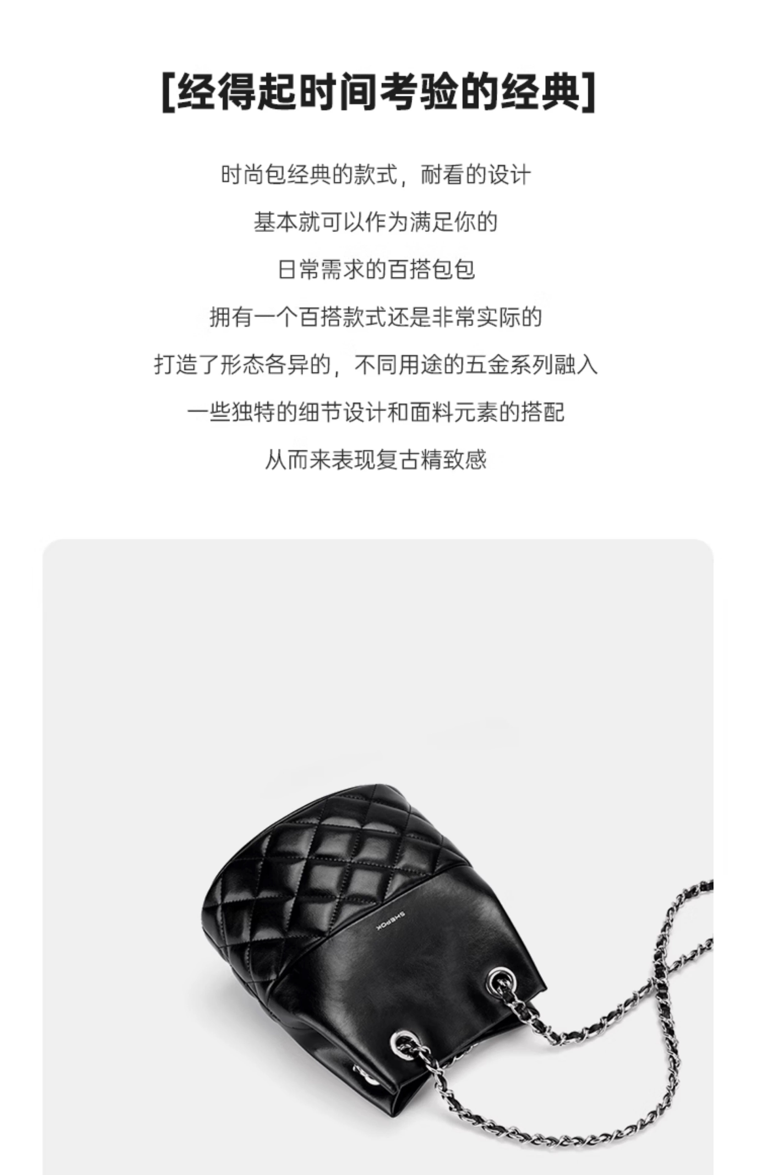 真皮小香风菱格链条水桶包2025新款高级感小众单肩斜挎包女 (Z9120-黑色) *仅限使用消费积分50%*
