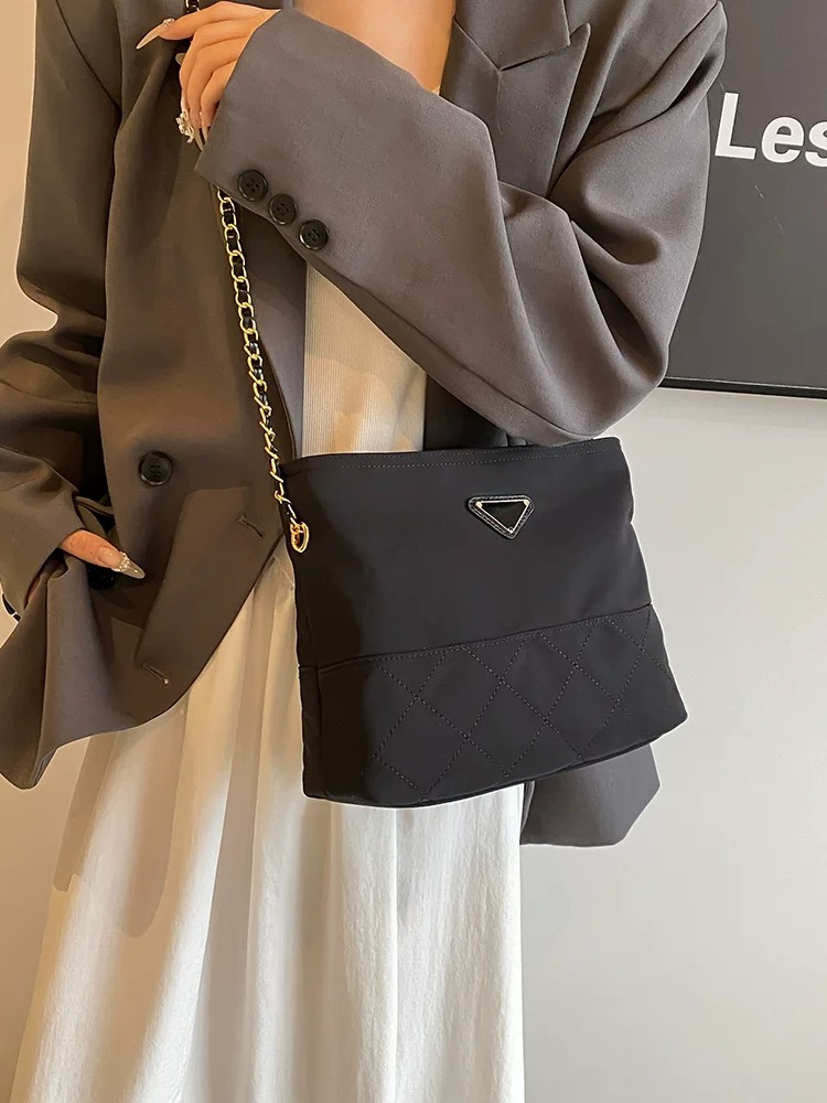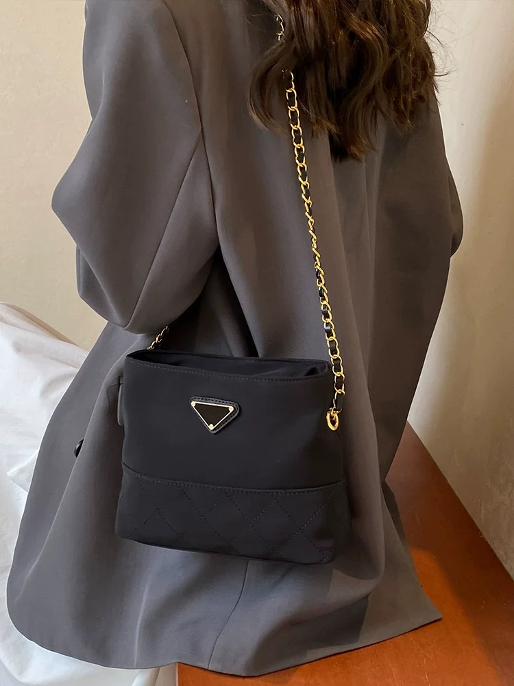 网红休闲包包女2025新款夏天时尚黑色单肩斜跨包百搭链条包 (qq3008) *仅限使用消费积分50%* / Pcs