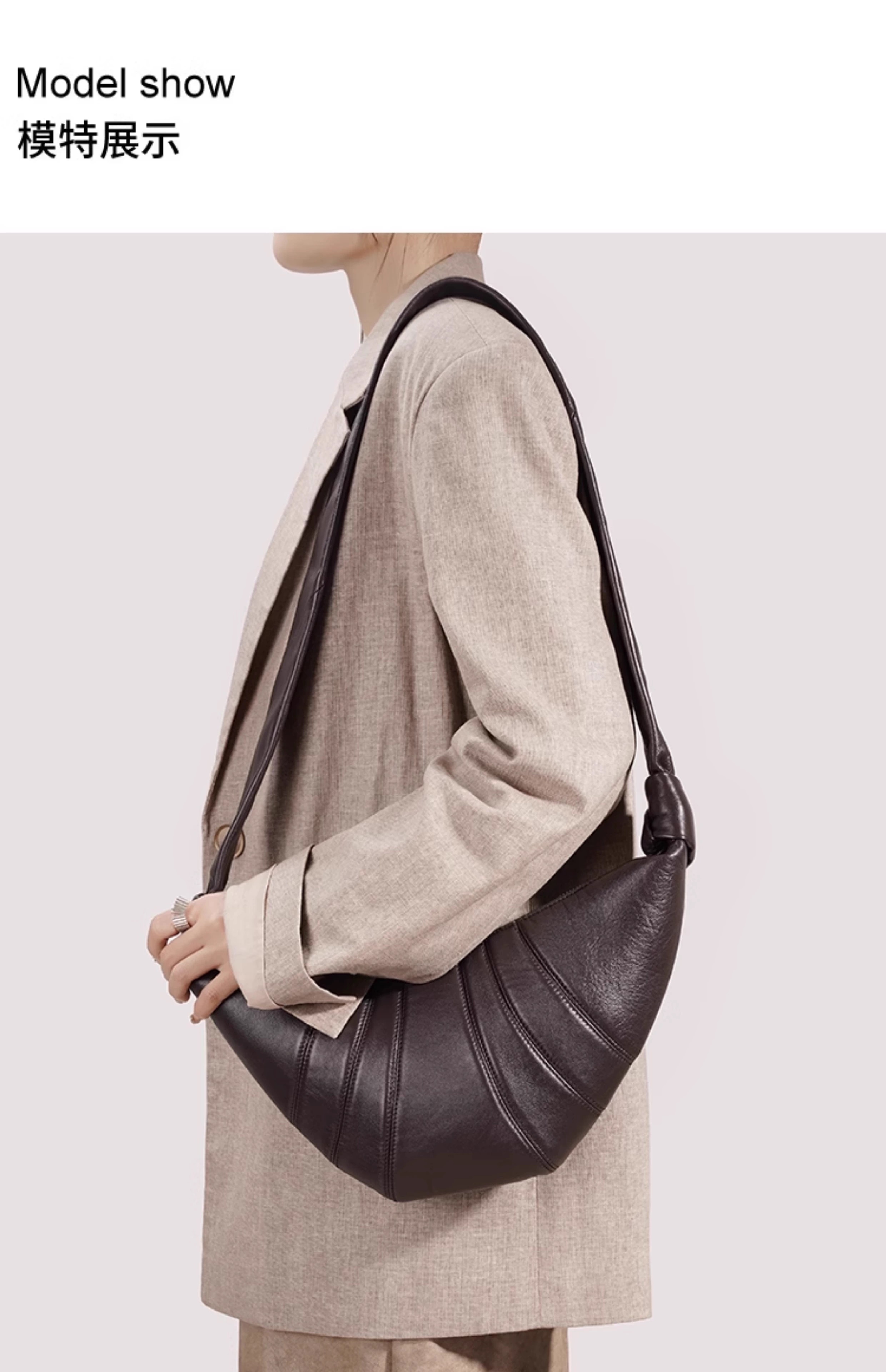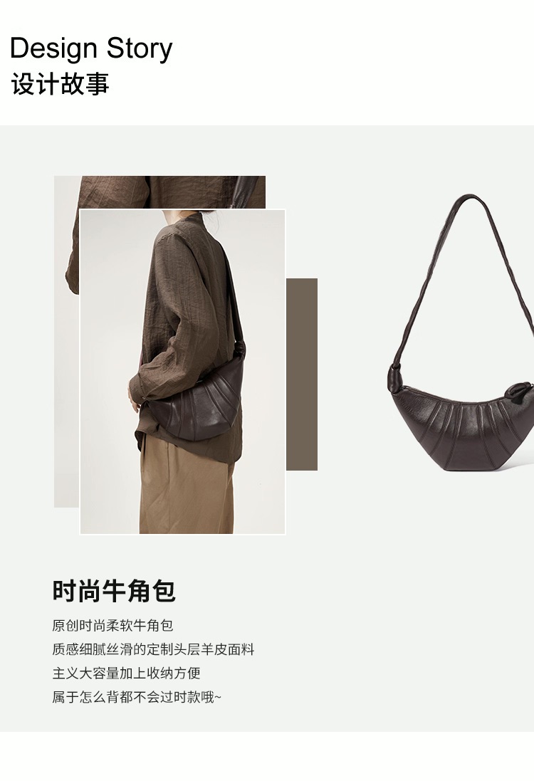羊皮牛角包小众真皮可颂包饺子包大容量中号斜挎包胸包 *仅限使用消费积分50%* / Pcs